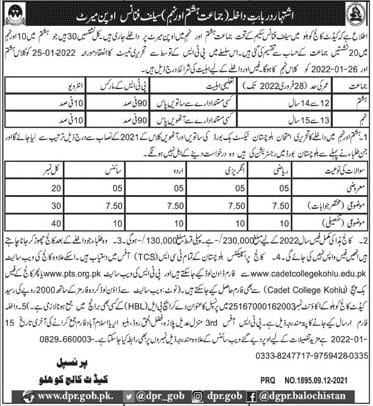 Cadet College Kohlu has announced Following Vacancies